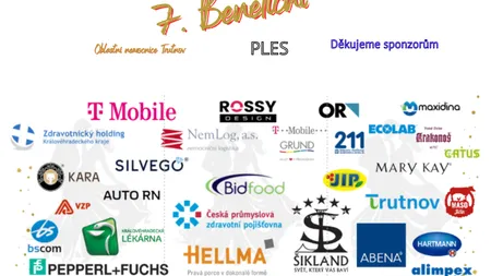 Velké a upřímné poděkování patří všem partnerům a sponzorům, kteří se podíleli na realizaci plesu a svou podporou přispěli k jeho úspěchu.
