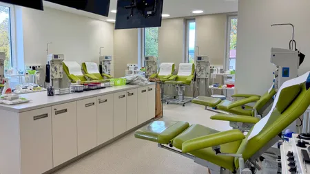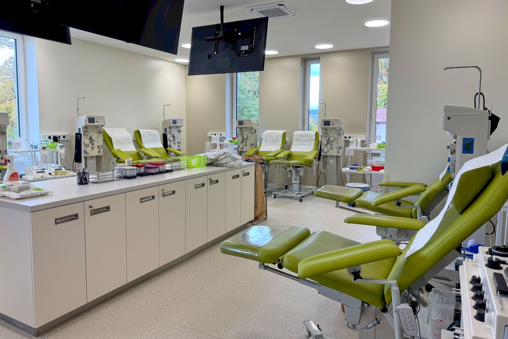 Hematologické a transfúzní oddělení je umístěné ve druhém podlaží a dělí se na příjem, transfúzní část a laboratoře. Nové odběrové sály disponují deseti stanovišti pro odběry krve či plazmy. Odebíraný materiál prochází moderním systémem zpracování, evidencí a uchováváním v chladicích boxech.